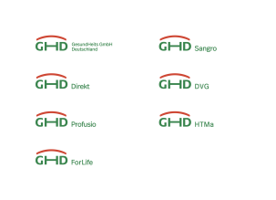 Rebranding der Gesundheits GmbH mit Überführung des bisherigen Logos in eine zeitgemäße, prägnante Form und systematischer Typografie, erweitertem Farbschema und programmatischer Markenarchitketur.